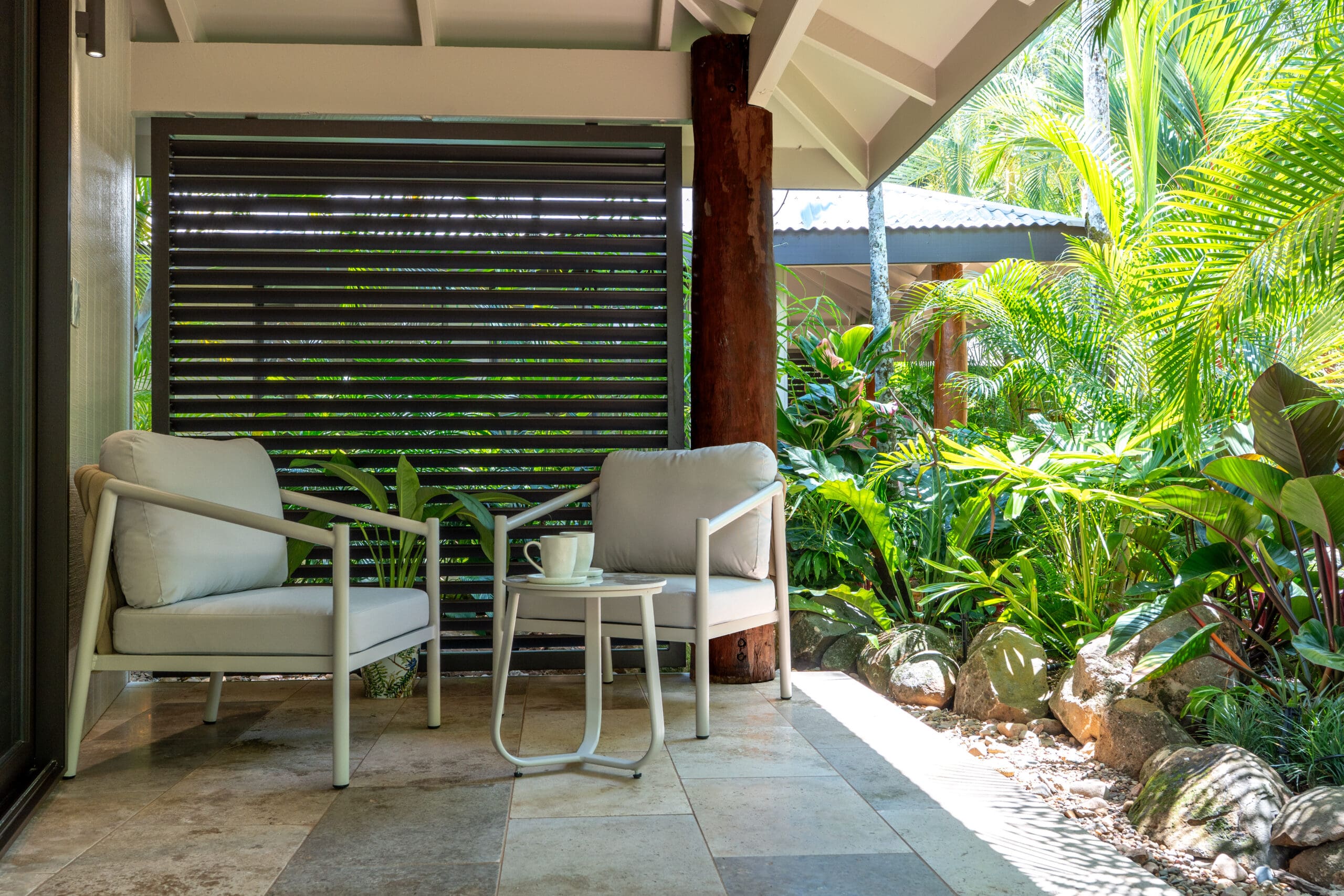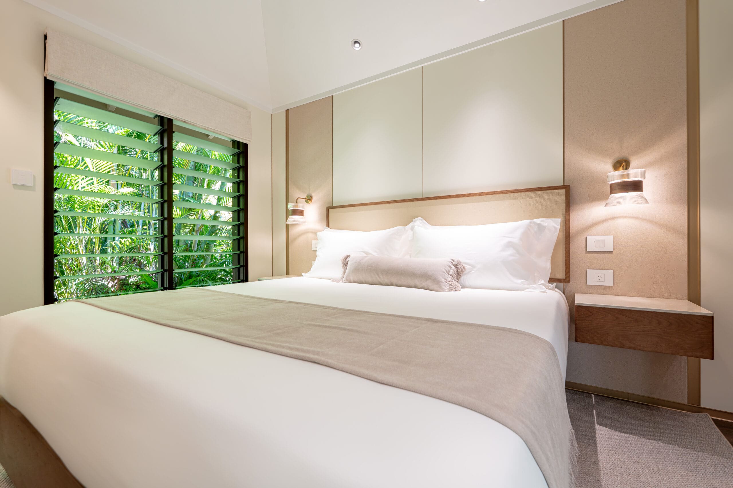 The King Villa is the largest of our Villas and is perfect for longer stays. Step into your private sanctuary, where elegance and comfort meet. Featuring a spacious separate bedroom, complete with luxurious king mattress and custom-made linen, you’ll drift into restful sleep. A full-sized lounge and inviting reading nook offer the perfect place to unwind, while your ensuite bathroom comes complete with premium amenities, robes, and pool towels for your convenience.