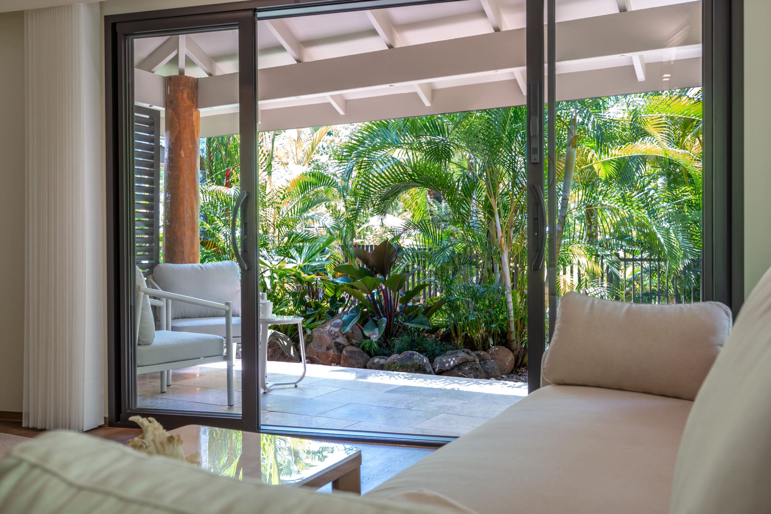 Beyond the interiors, your private patio is the ideal spot for morning coffee or an evening cocktail, with in-room dining available for those slow, indulgent moments. Every detail, from the shopping tote to the minibar, has been curated to enhance your stay. And when you’re ready to venture out, indulge in fresh seasonal dining and signature cocktails at our on-site restaurant and bar, or enjoy poolside service under the tropical sun.