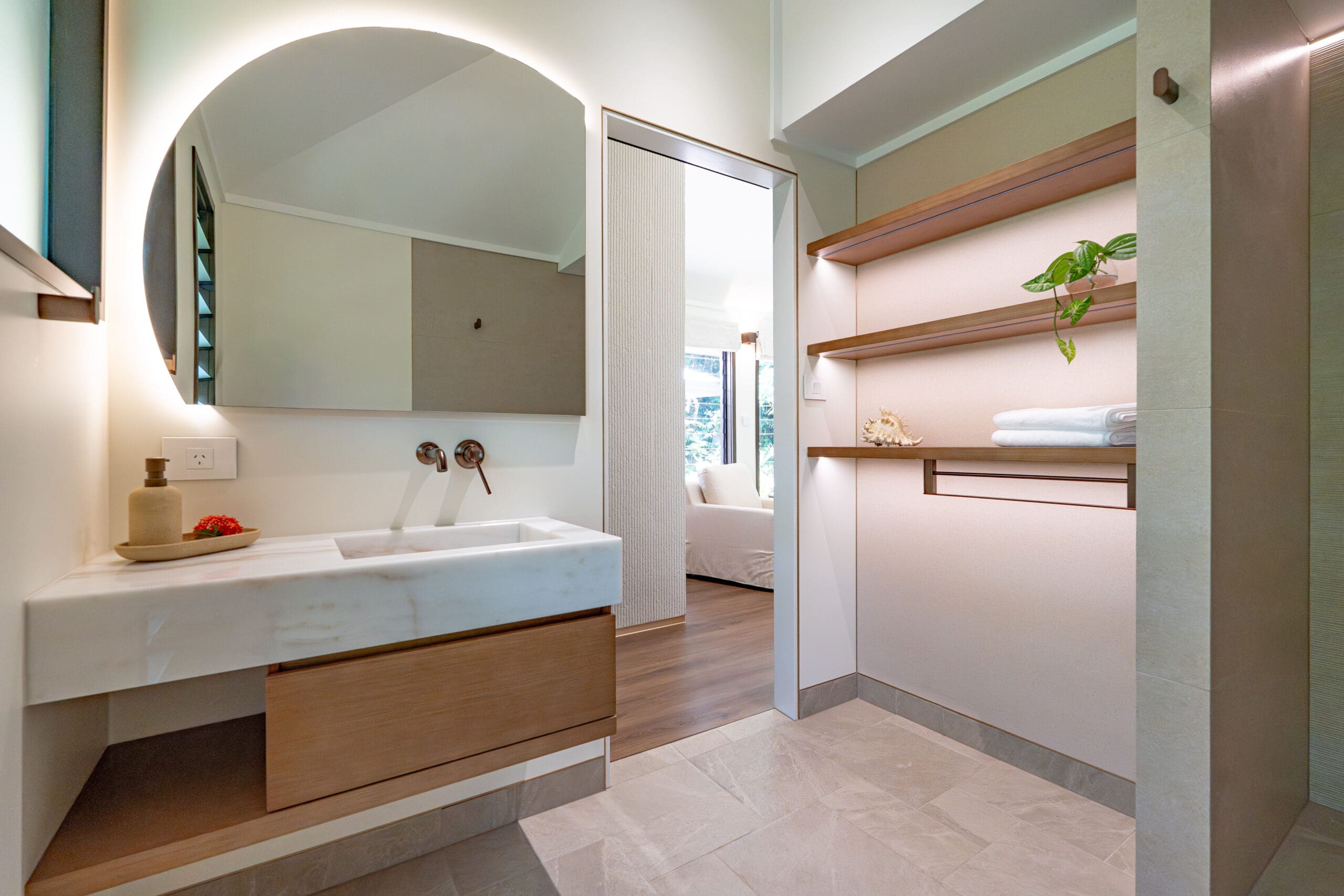 The Studio Villa is the larger of our studio style rooms. Tailored for longer stays and unhurried indulgence, The Studio Villa combines the ease of studio living with thoughtful touches that feel like home. The open-plan layout features a king mattress and custom made linen for deep, restorative rest.